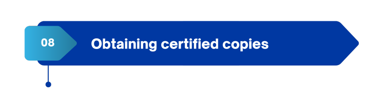 Step 8 – Each court has its own process to request and obtain certified copies. Call the clerk of your court for this information. Note, this typically comes with a small fee for the copies and certifications.